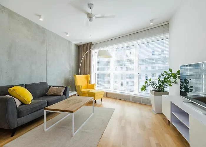 Located 10 minutes by car from the large park "Mokotow Field", the spacious Piekny Apartament W Warszawie Warsaw overlooks the city. Wi-Fi and a free private car park are among the essentials at guests' disposal.